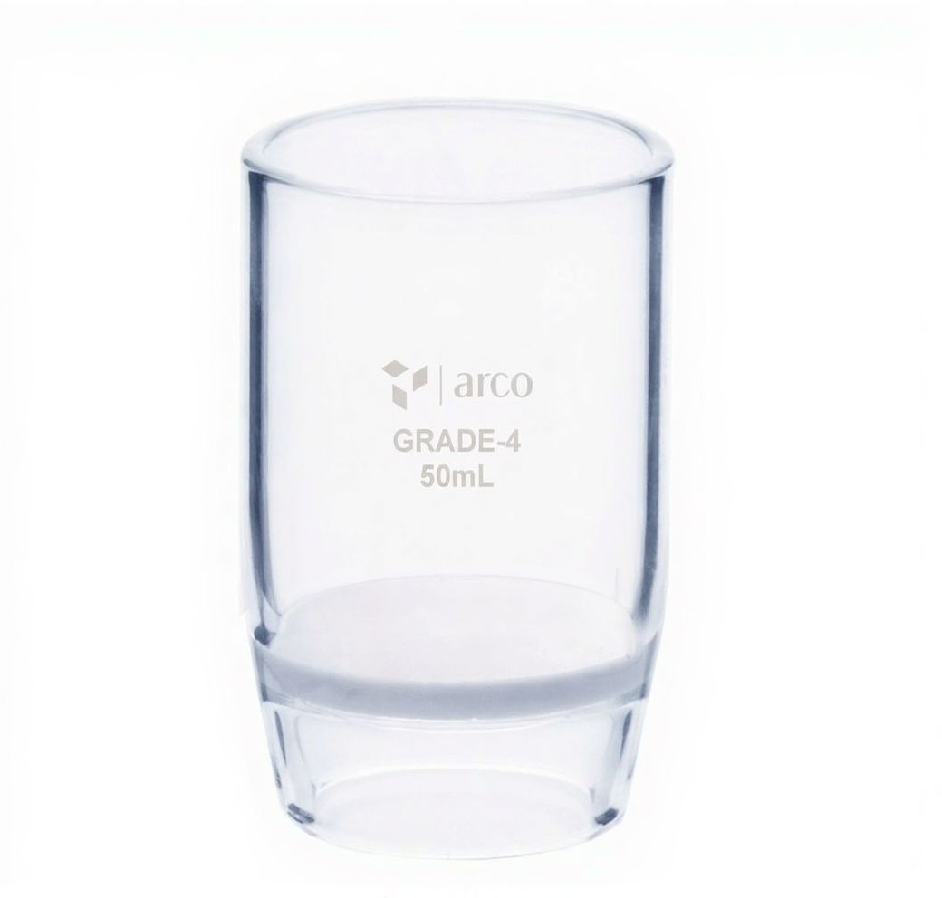 Creuset de filtration type Gooch en verre borosilicaté 3.3, capacité 50 mL, équipé d’un disque fritté G‑4 intégré pour la filtration fine. Idéal pour la séparation solide‑liquide en laboratoire et les applications analytiques ou métallurgiques.