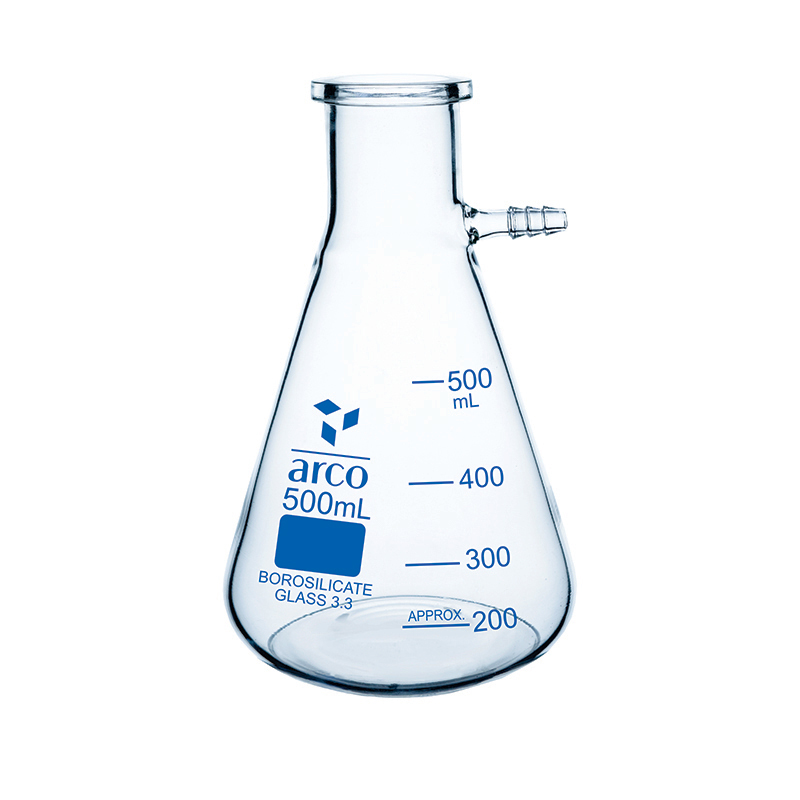 Ce flacon de filtration type Büchner d’une capacité de 500 mL est fabriqué en verre borosilicaté 3.3, résistant à la chaleur et conforme à la norme DIN/ISO 3585.