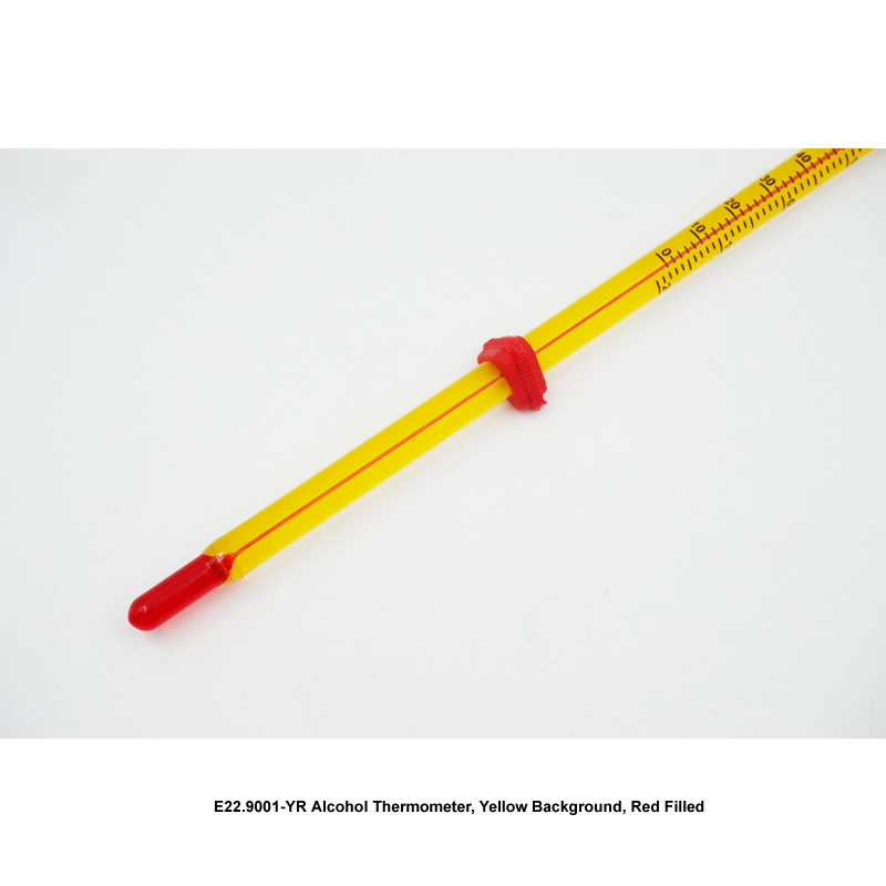 Thermomètre à alcool fond jaune rempli rouge – lecture facile